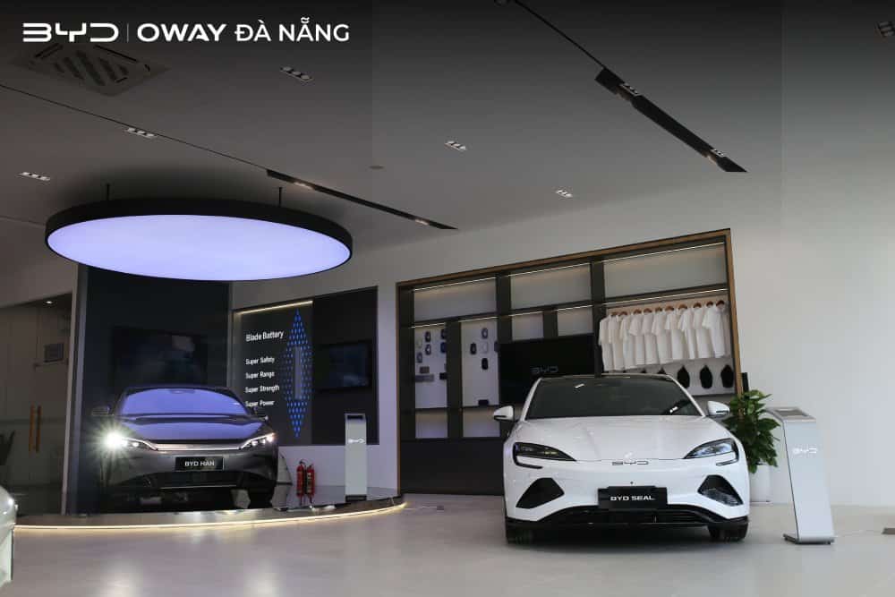 BYD Oway Đà Nẵng (gọi tắt là BYD Đà Nẵng) tọa lạc tại 548-550-552-554 Nguyễn Hữu Thọ, Phường Cẩm Lệ, Đà Nẵng – khu vực trọng điểm giao thương của thành phố Đà Nẵng. Đây là một trong những đại lý uỷ quyền của BYD Việt Nam, được xây dựng theo tiêu chuẩn 5 sao với diện tích rộng rãi, kết hợp không gian trưng bày xe và xưởng dịch vụ hậu mãi.